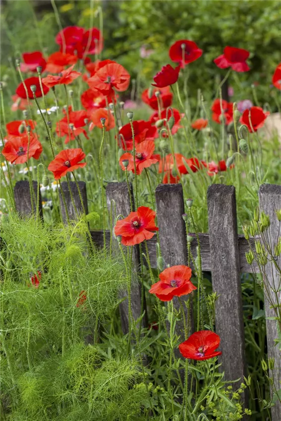Papaver rhoeas Damit kommen wir zu den konkreten Wirkungsweisen, die den verschiedenen Farben innewohnen. Die stärkste Wahrnehmung kann Rot für sich verbuchen. Mit seiner automatischen Signalfunktion wirkt es großflächig eingesetzt zu aufdringlich. Aber geschickt platziert, kann die Farbe wunderbare aktivierende Akzente setzen. Die intensiven Blüten des Mohns, die korallenroten Früchte der Berberitze, das herrliche Laub der Blutbuche, der exotische Feuerahorn und die ausdrucksstarken Triebe des Hartriegels im Winter sind einige Beispiele.
